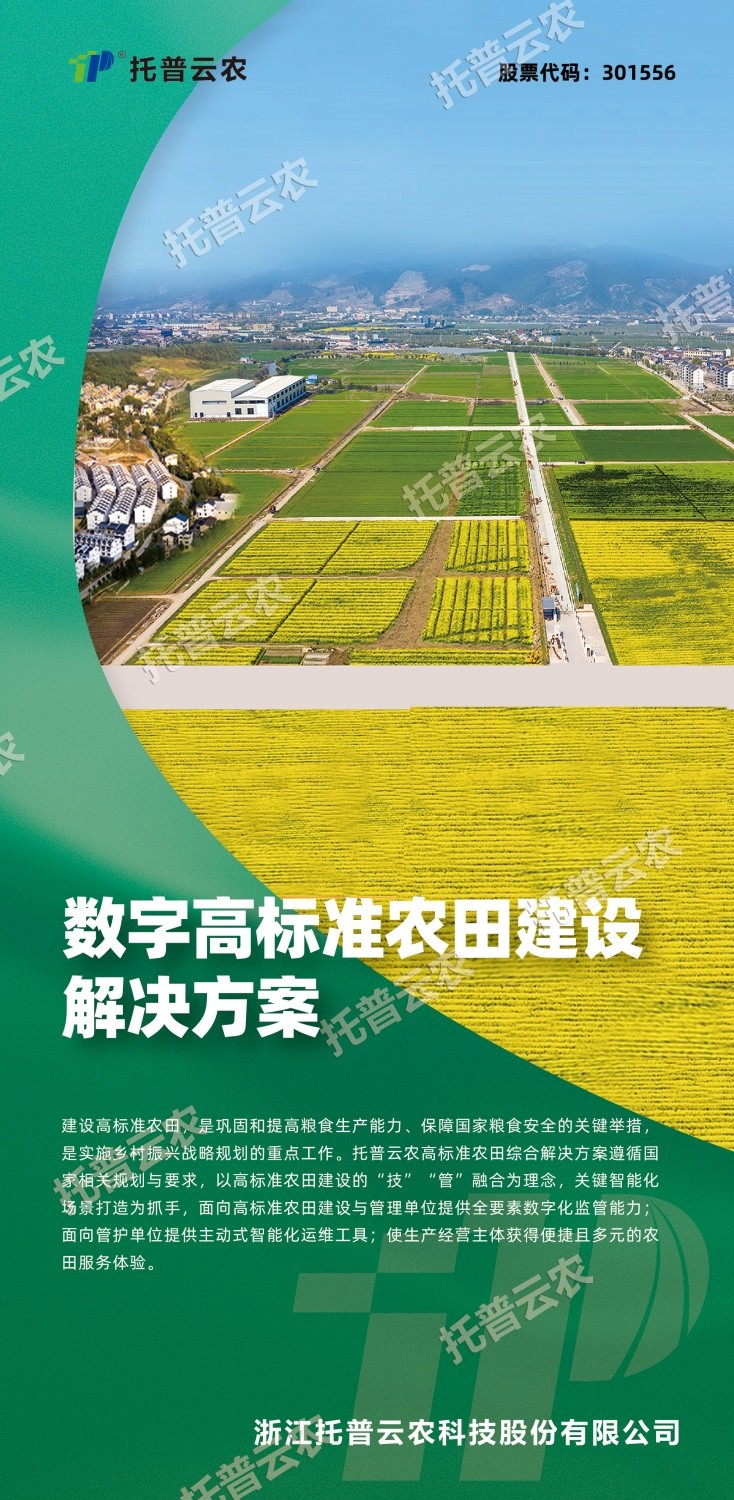 作为中国智慧农业领域的先行者,浙江芭乐视频下载污在线观看科技股份有限公司(股票简称:芭乐视频下载污在线观看,股票代码:301556)始终立于行业一线,深入探索数智技术与农业生产的融合应用,以高标准农田建设的“技”“管”融合为理念,以关键智能化场景打造为抓手,构建数字化、智能化、集约化的高标准农田(绿色农田)建设解决方案。